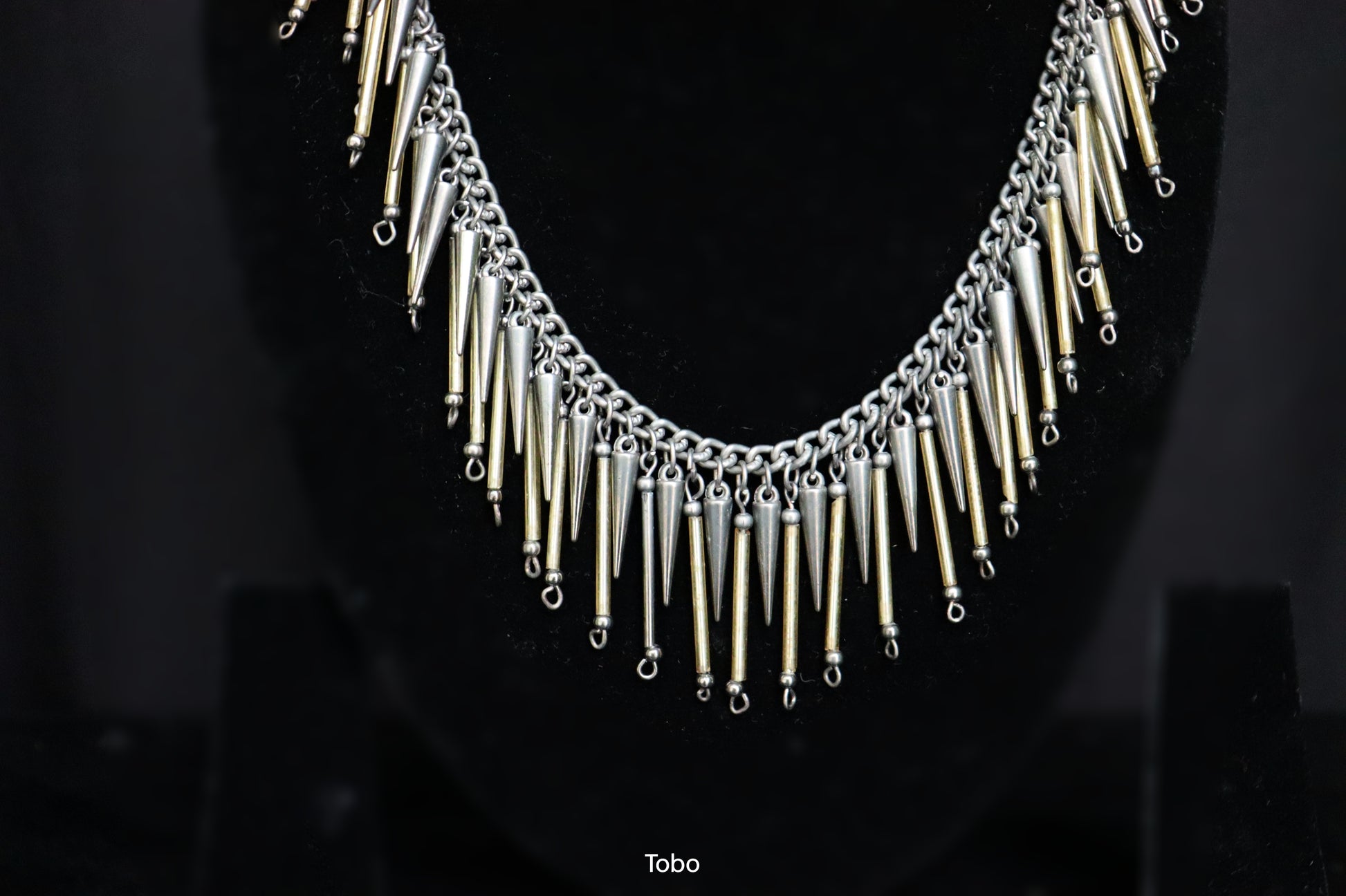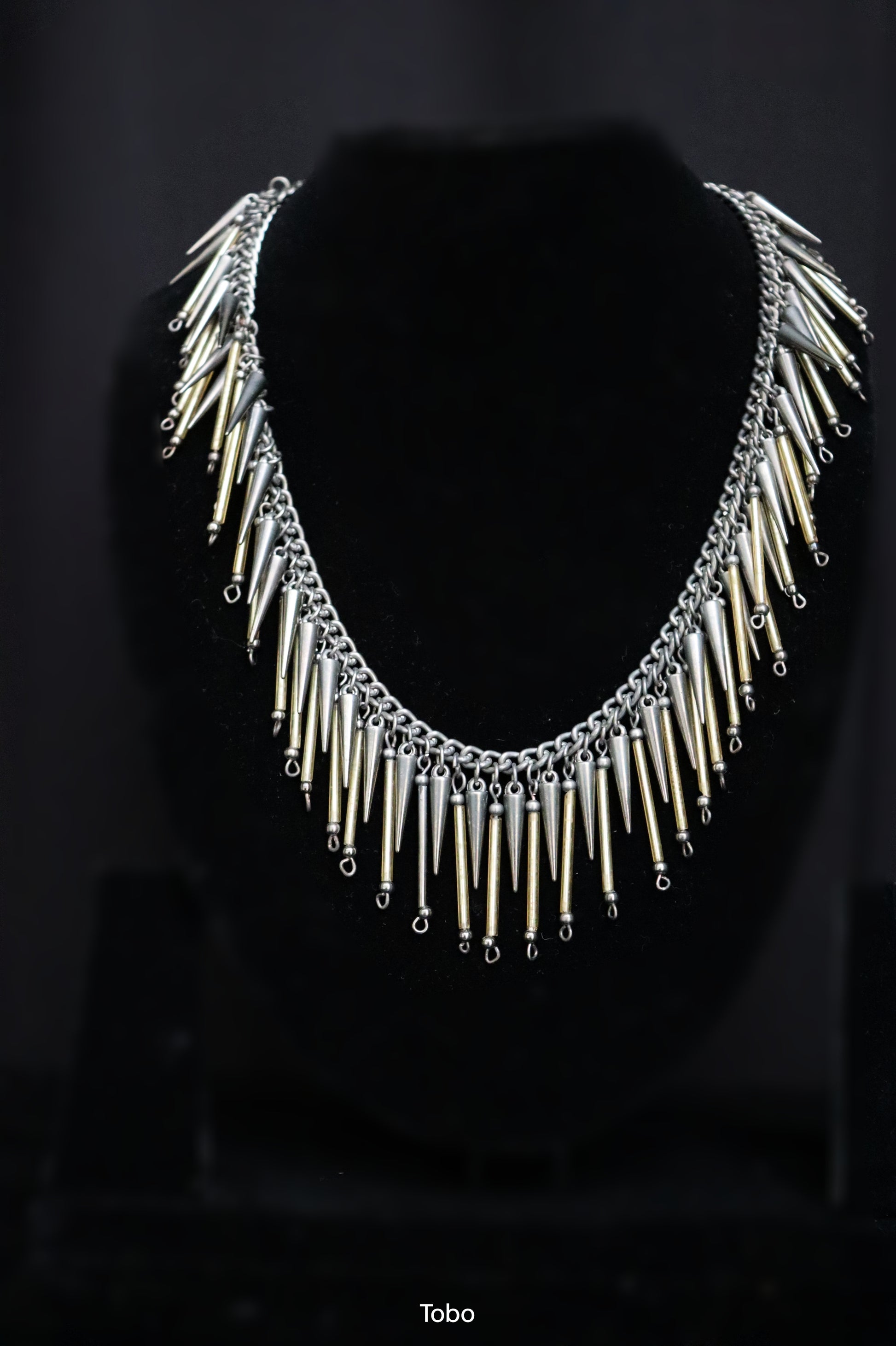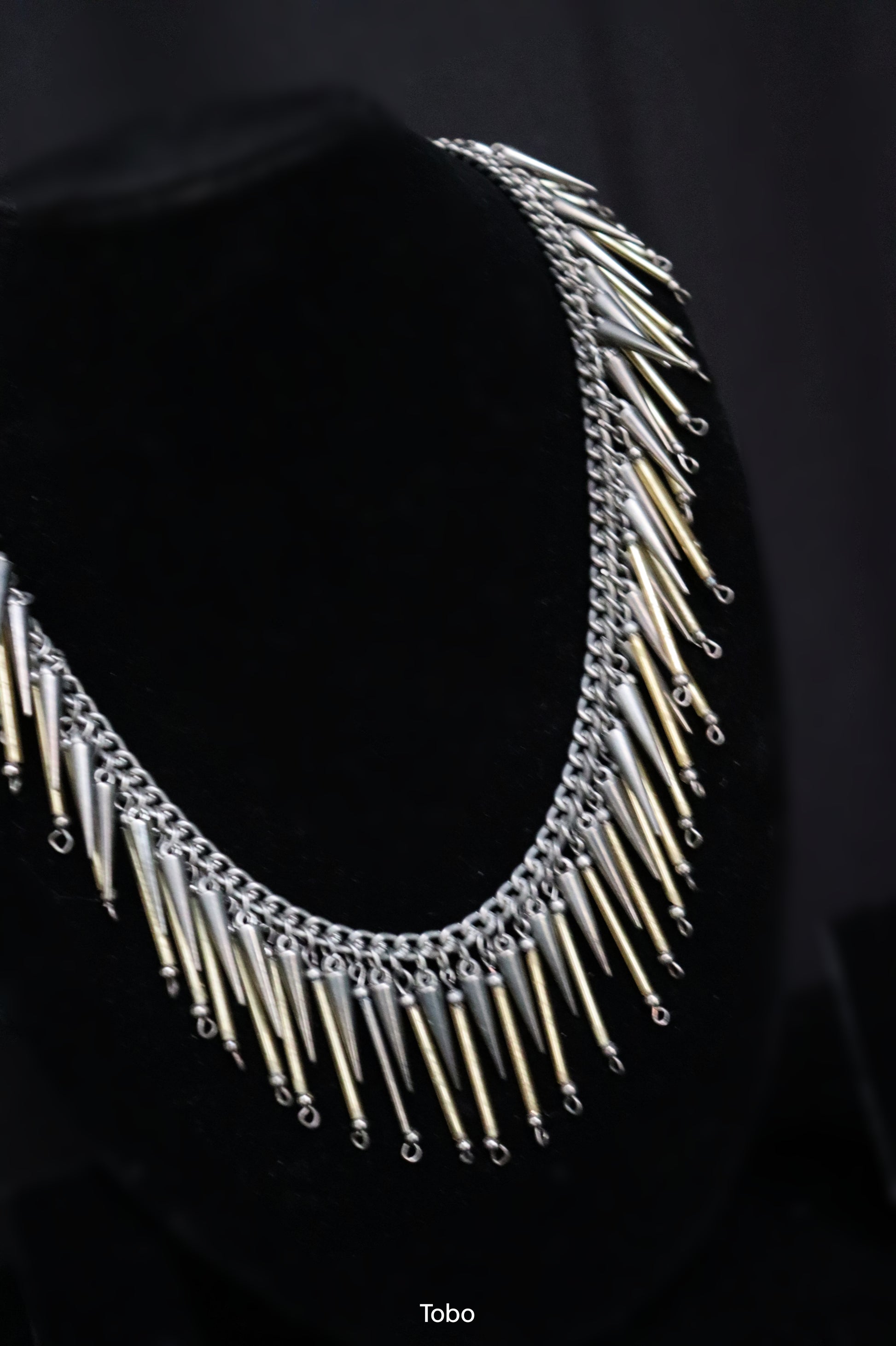 This necklace is more than just an accessory; it's a manifesto, a declaration of independence from the mundane and the ordinary. With its fusion of metal and glass, grit and glamour, the Punk Necklace embodies the spirit of punk culture, inspiring confidence and empowerment in those who dare to wear it.
