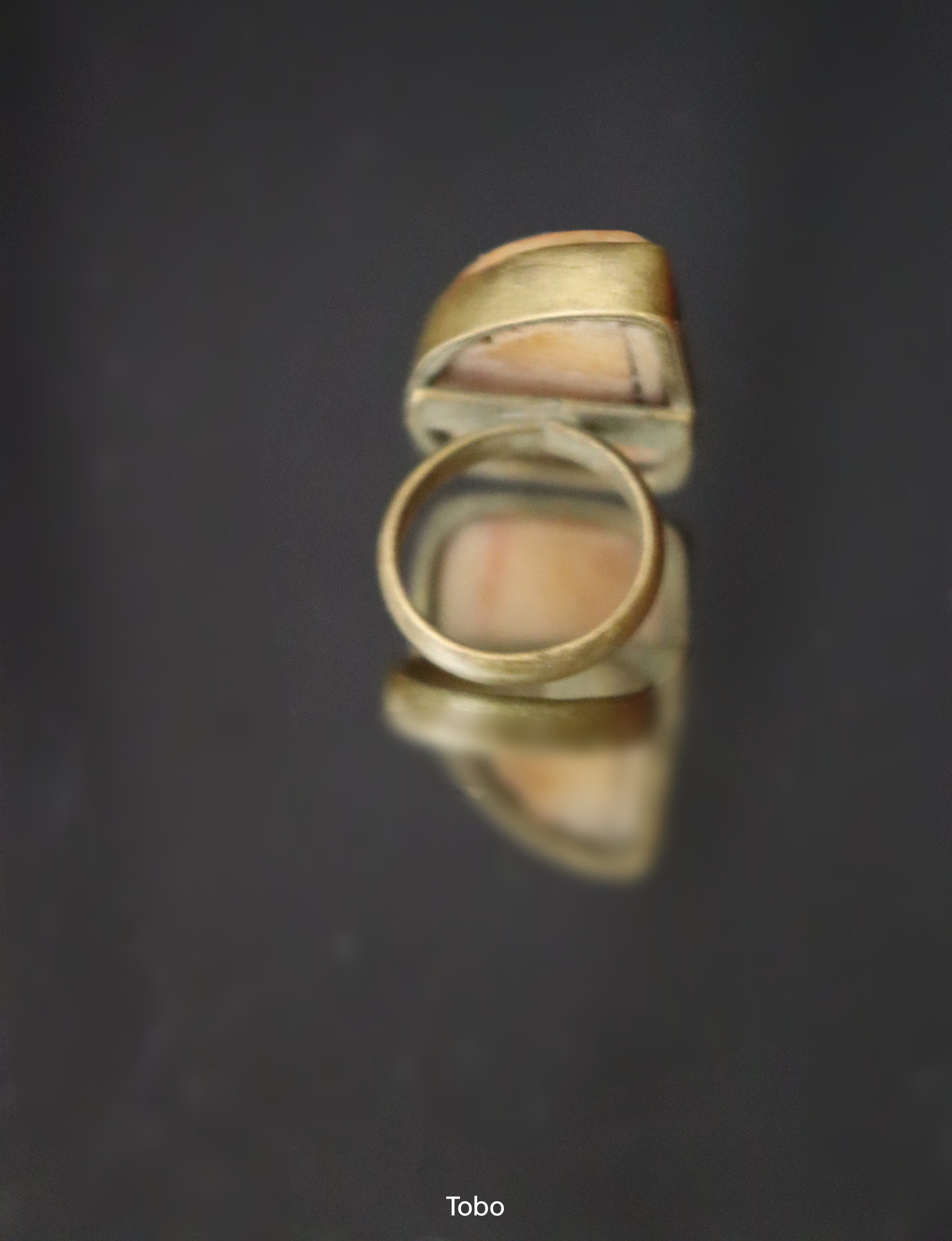 Handmade upcycled Brass statement ring made with semi-precious stones.